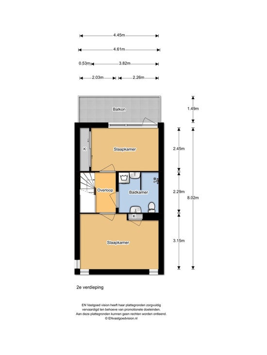 De tweede verdieping biedt nog eens twee ruime slaapkamers, waarvan één met een balkon op het westen, evenals een tweede badkamer met dubbele wastafel, inloopdouche en toilet. Hier vindt u tevens de wasmachineaansluiting.