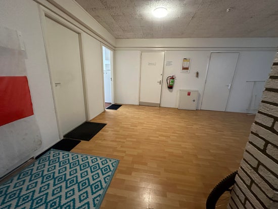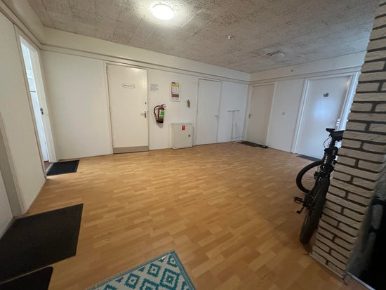 De kamer is circa 20 vierkante meter groot, gelegen op de eerste verdieping, en is uitgerust met een laminaatvloer. U deelt samen met de andere bewoners twee badkamers, voorzien van douche, toilet en wastafel. Daarnaast is er een wasmachine beschikbaar voor gezamenlijk gebruik.