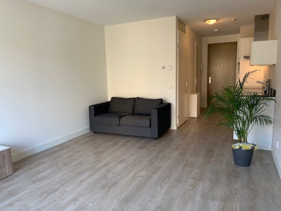 De studio is gelegen op de begane grond. U komt binnen in een hal met videofoon. Aan de linkerzijde bevindt zich de luxe open keuken, voorzien van een inductiekookplaat, afzuigkap, vaatwasser, combi-oven en koelkast. De woon- en slaapruimte vormen één open, lichte ruimte met toegang tot het privéterras. De studio beschikt verder over een nette badkamer met douche, wastafel en toilet. Daarnaast is er een inpandige berging met vriezer en aansluiting voor een wasmachine.