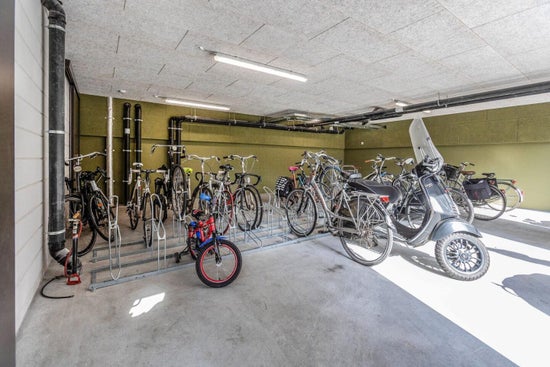 Via de centrale entree bereikt u de algemene hal met bellentableau, brievenbussen, liften, trappenhuis en een gezamenlijke fiets-/scooterstalling.
