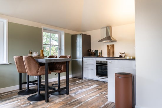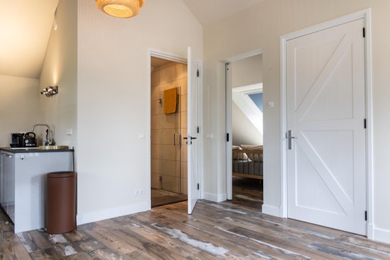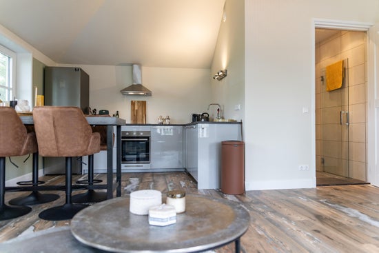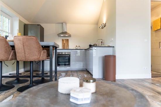 Bij aankomst parkeert u uw auto op het erf en loopt u naar de recreatiewoning gelegen op de eerste verdieping. Via de entree komt u in een sfeervolle woonkamer met een zitje bij de openslaande deuren naar het eigen terras. De open keuken is volledig ingericht met servies, kookgerei, een Nespresso apparaat, en alle benodigde apparatuur, inclusief een afwasmachine. De woning beschikt verder over een goed bemeten slaapkamer en een mooie badkamer met inloopdouche en toilet.