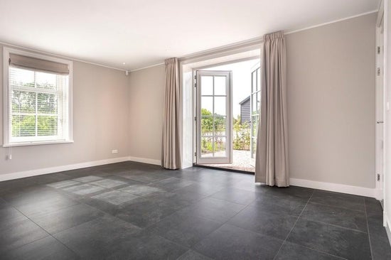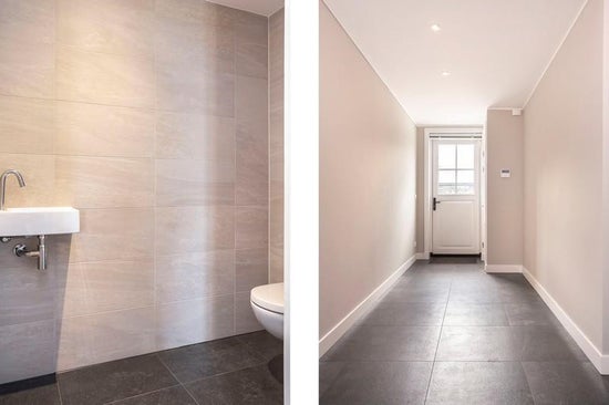 Begane grond: entree met toilet, ruime woonkamer met een fraaie stenen vloer voorzien van vloerverwarming en openslaande deuren, luxe open keuken met inbouwapparatuur, bijkeuken met wasmachine en droger en toegang tot de achtertuin, royale slaapkamer met inloopkast en toegang tot het terras, badkamer met ligbad, inloopdouche, dubbele wastafel en toilet.